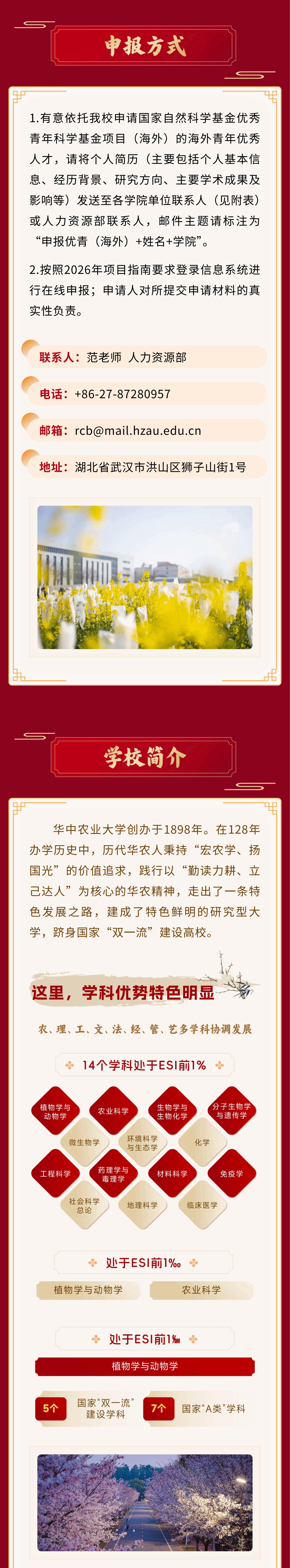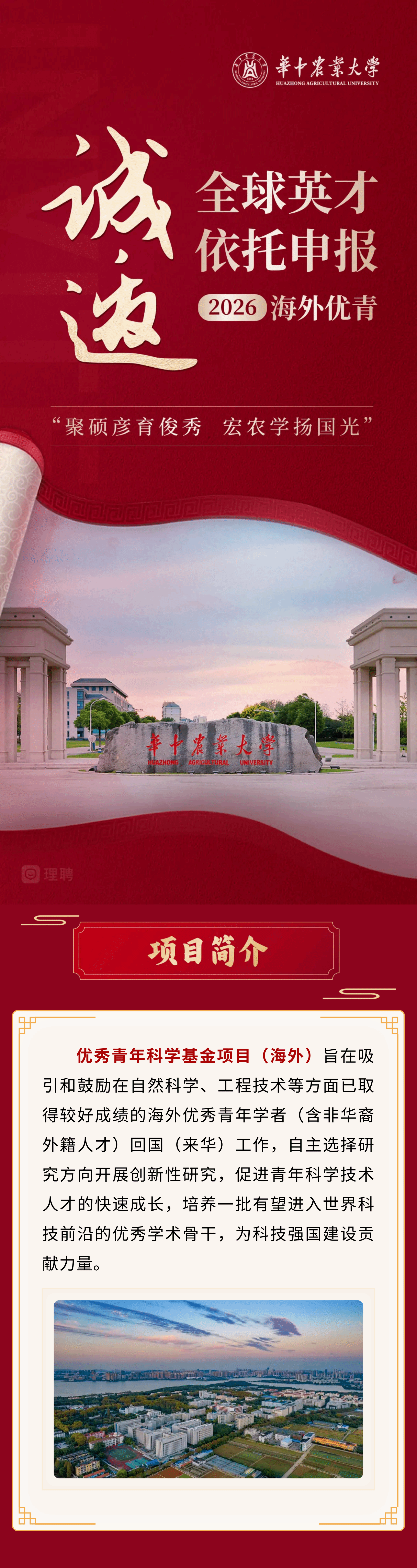 华中农业大学诚邀全球英才依托申报2026年海外优青